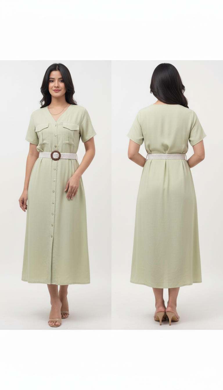 The Belted Midi Shirt Dress is more than just a casual dress — it’s a blend of style, versatility, and modern elegance. With its flattering belted waist, polished shirt collar, and midi-length silhouette, it ensures that you look confident, chic, and stylish on every occasion.