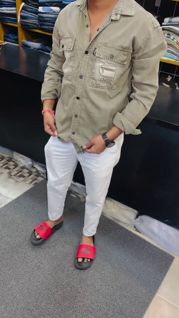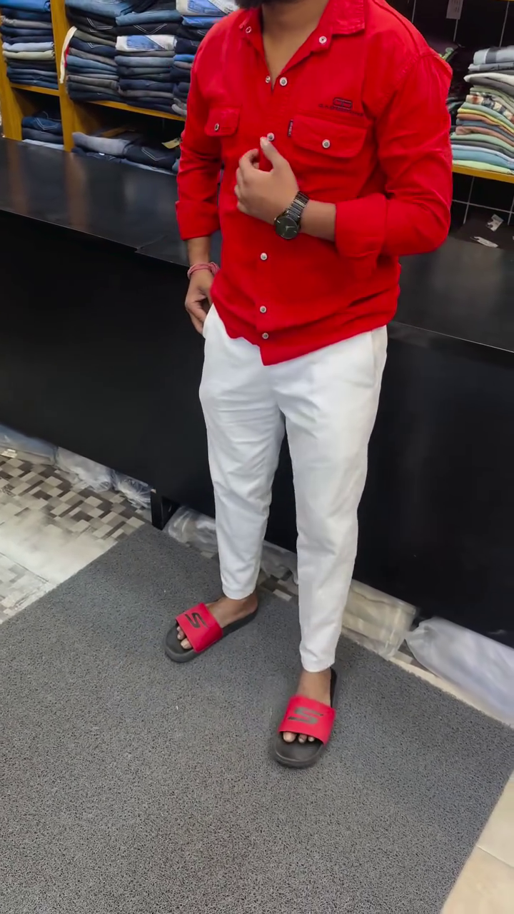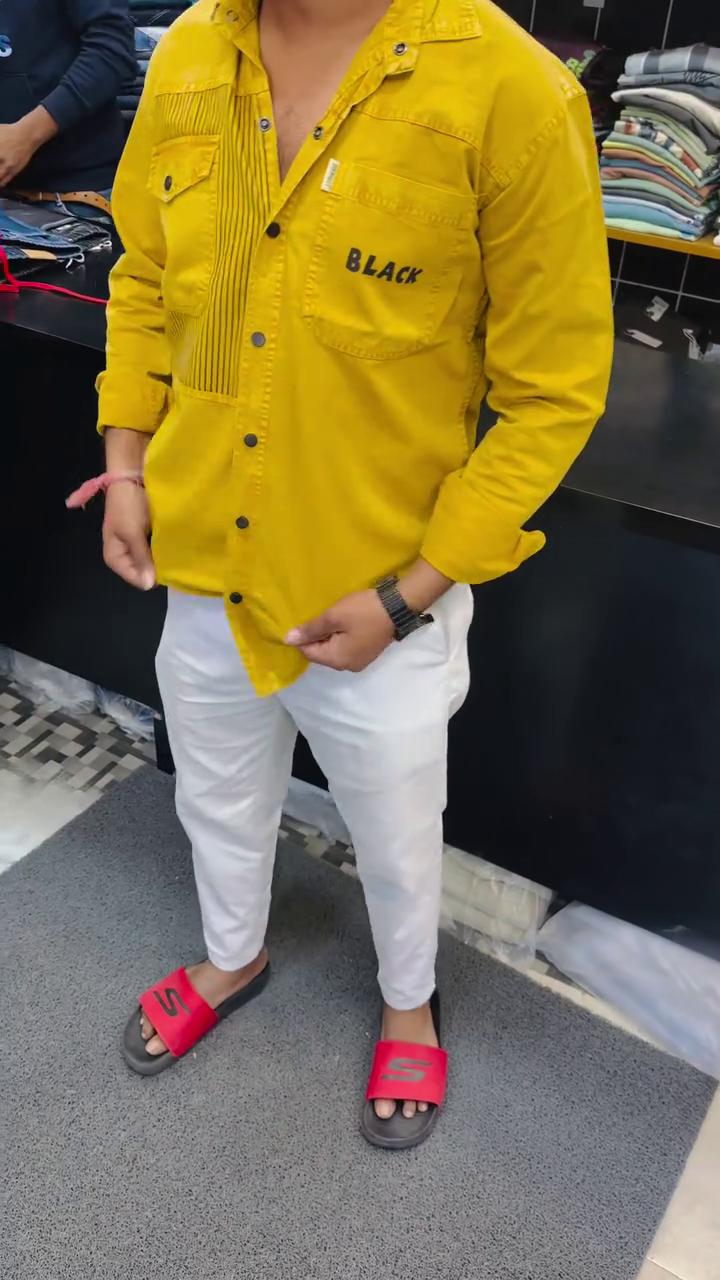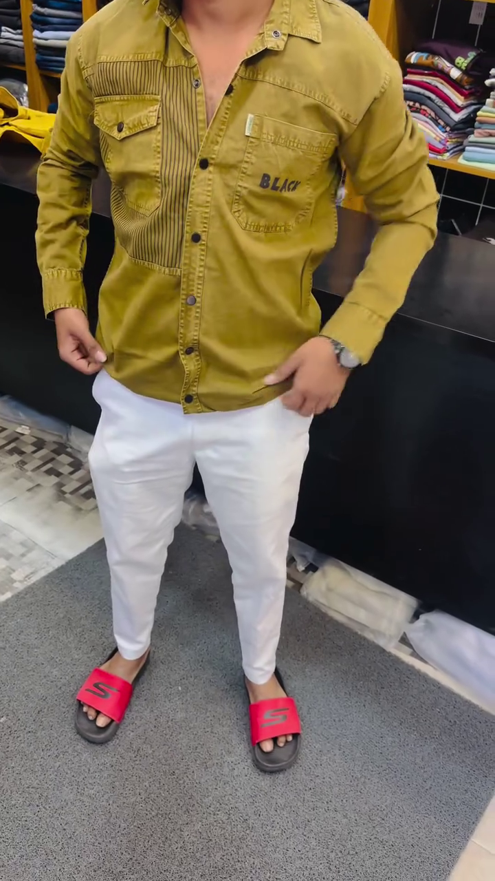 The shirt features multiple front pockets and unique textured panel detailing, giving it a trendy and contemporary style. The classic button-down design with full sleeves makes it suitable for casual outings, weekend plans, and everyday wear.