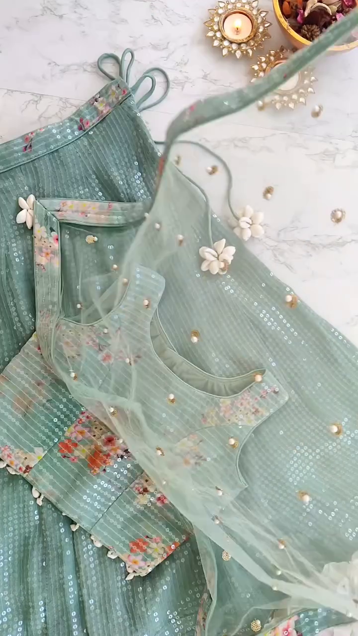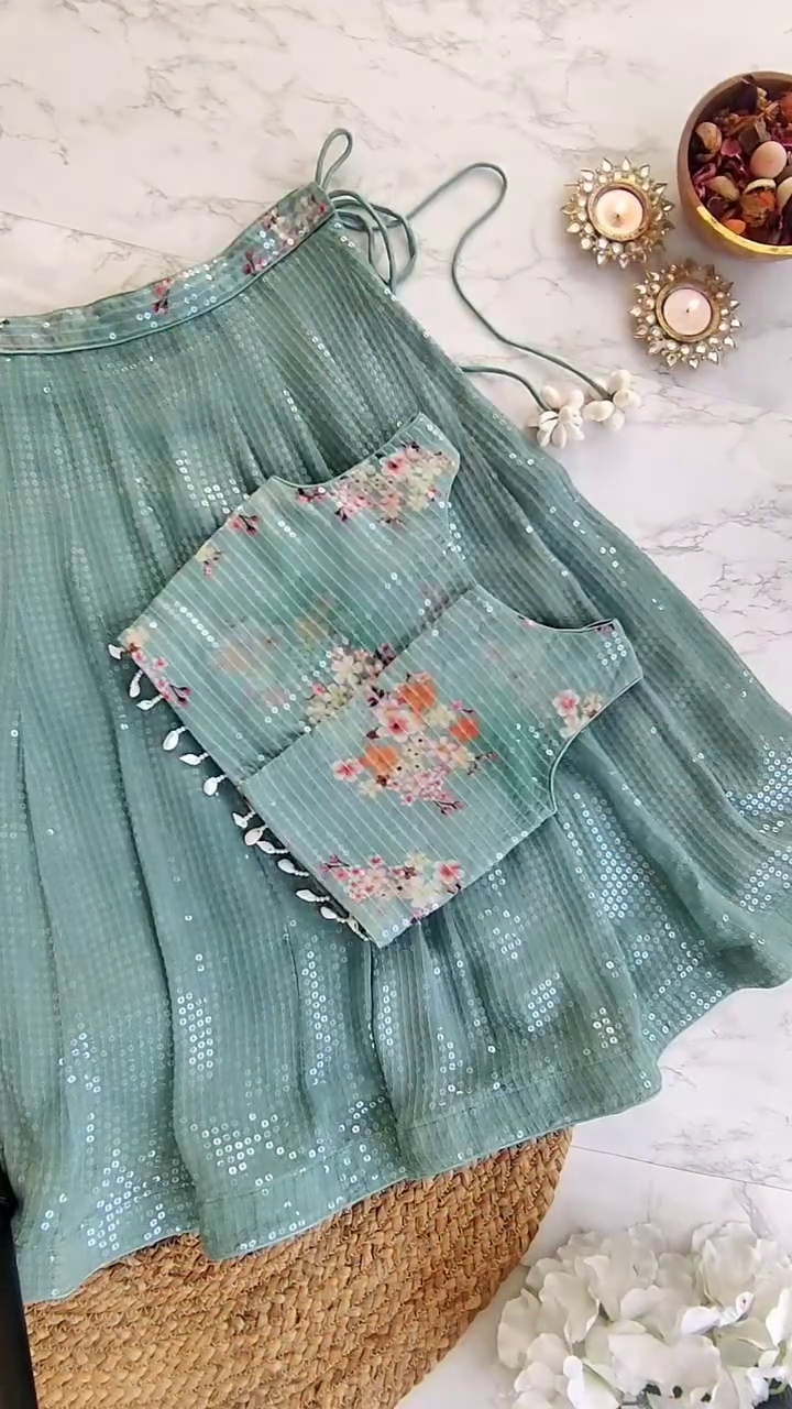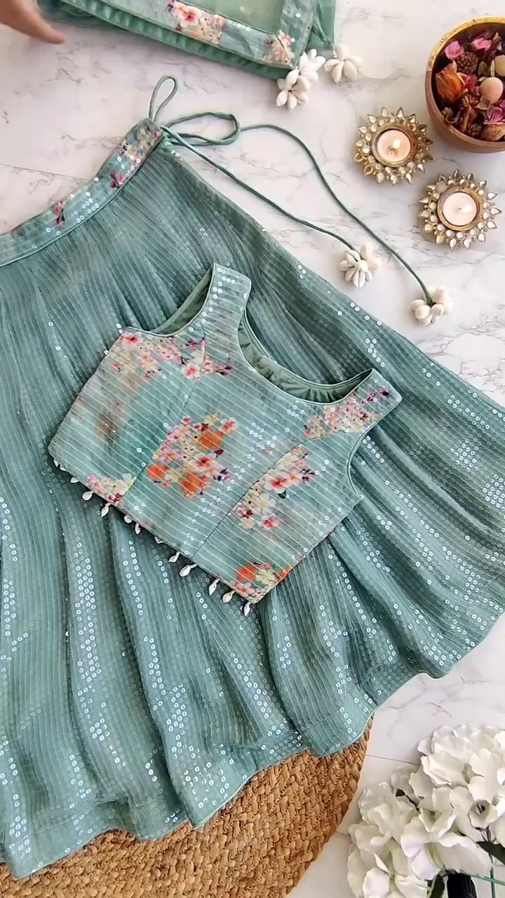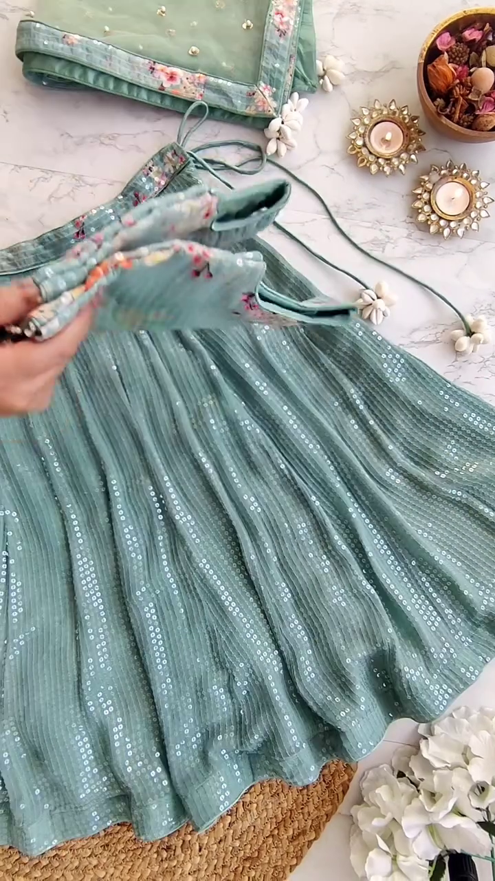 - Sage Green Lehenga in Sequinned Georgette